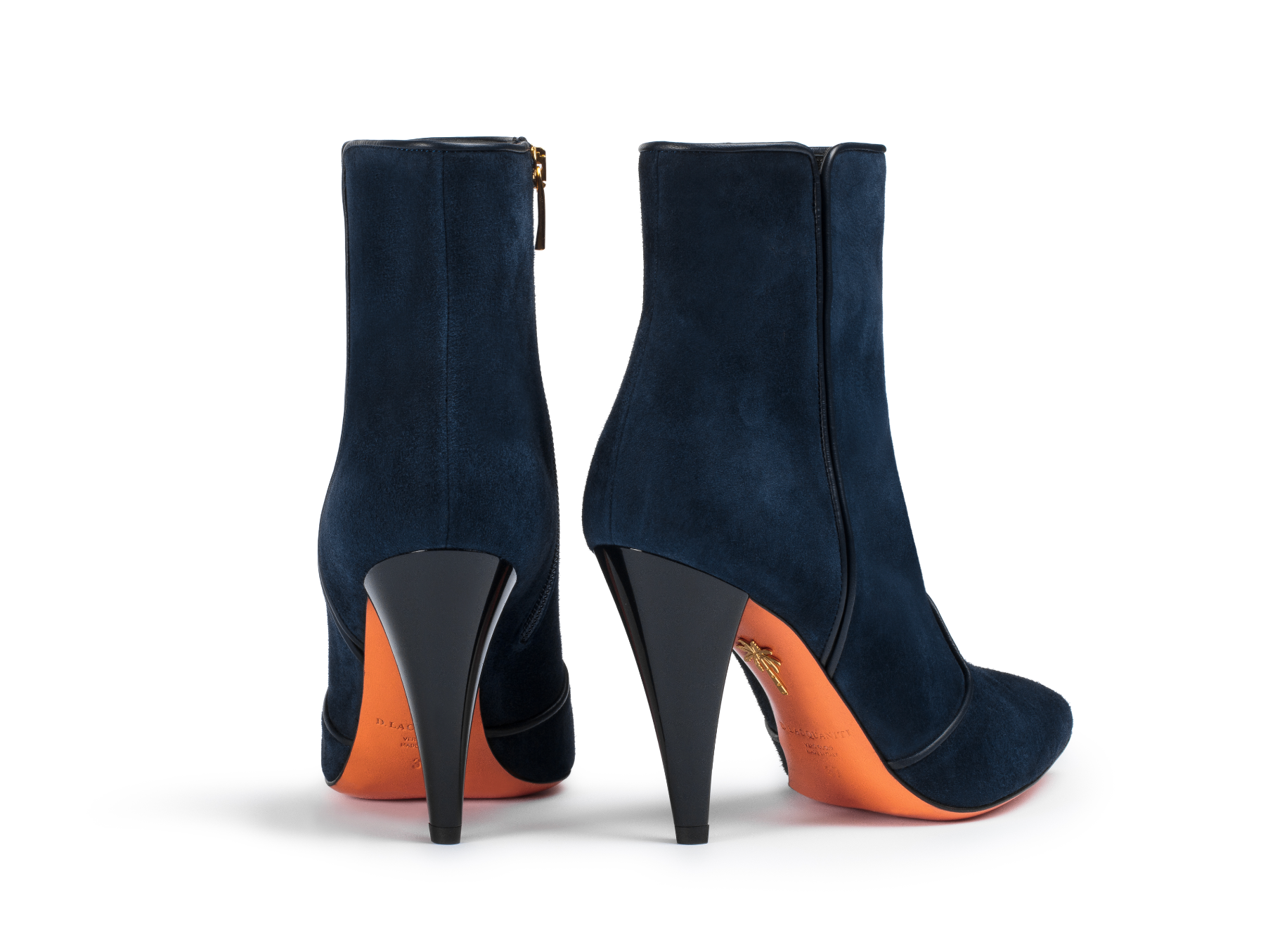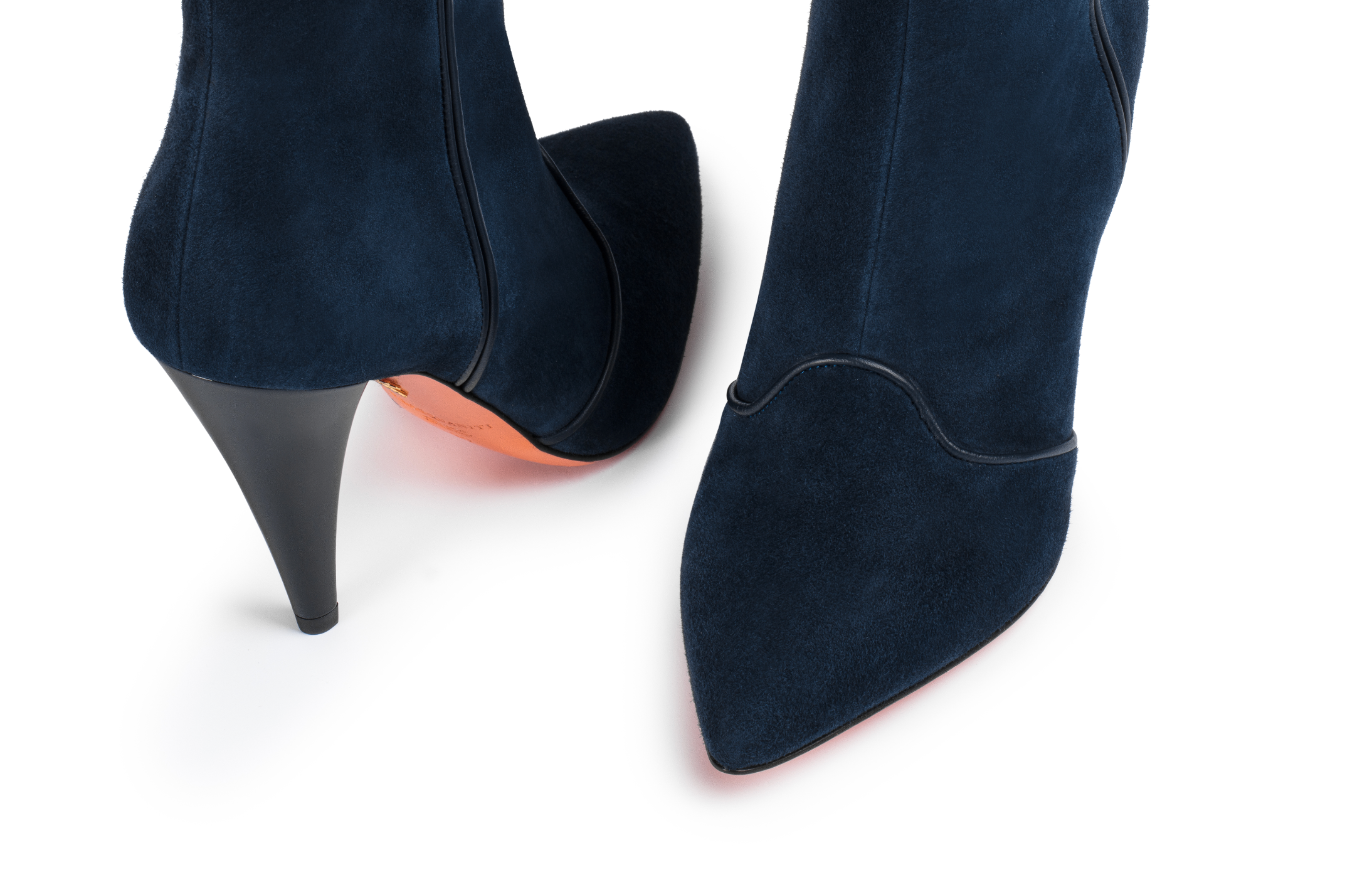 Step into style with Charlie navy suede boots. At a 90mm heel height, these 100% handcrafted Italian boots elevate your look while ensuring comfort. Made from high-quality suede, they are perfect for any occasion. With a limited size run, only two pairs of each shoe exist, making them exclusive and unique. Embrace sophistication and elegance with Charlie. If you're unsure of fit, please review the size chart.