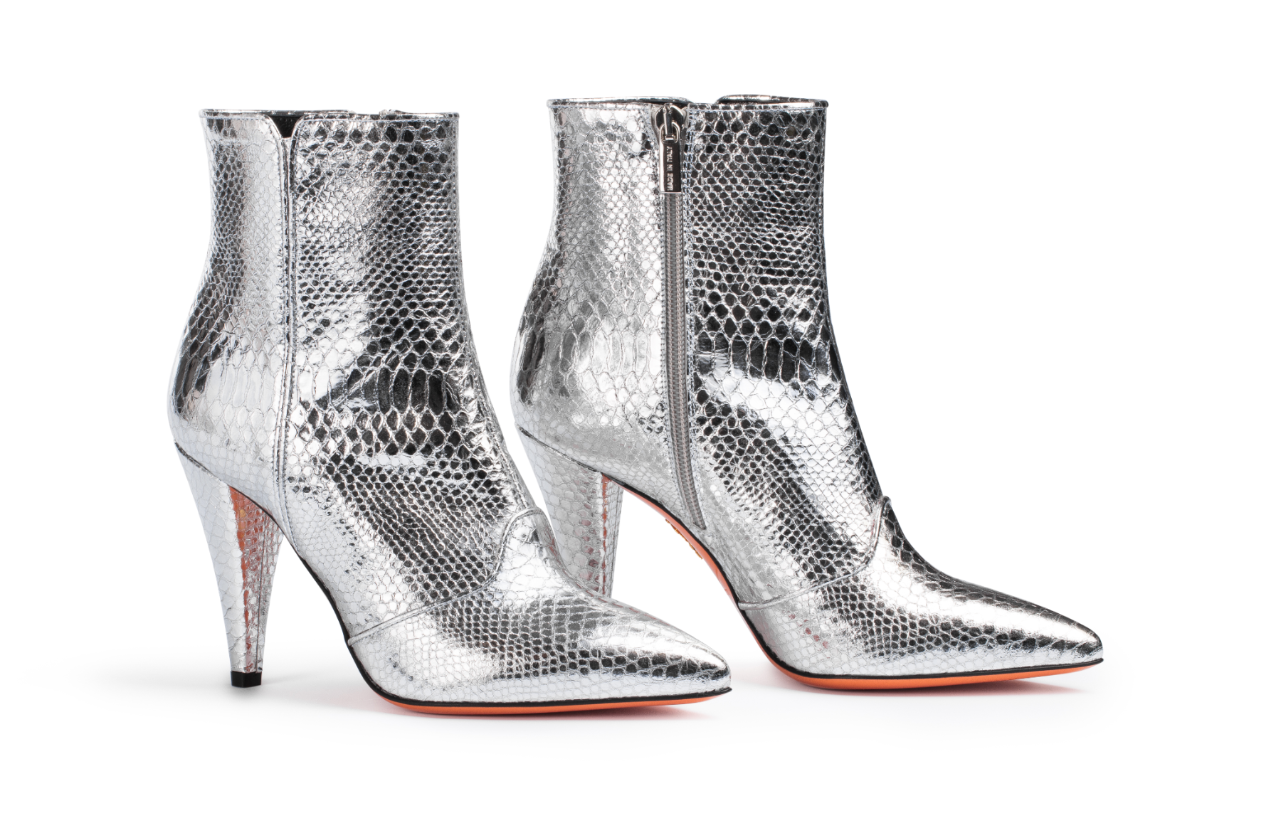 Saddle up and conquer the universe in style with Charlie in Space Cowgirl Silver Embossed Leather Boots. These 90mm heels combine effortless fashion and function, offering you the confidence to stand tall with every step.
