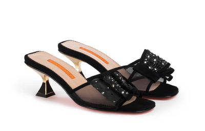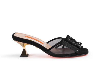 Crystal Embellished Mesh & Suede Mules