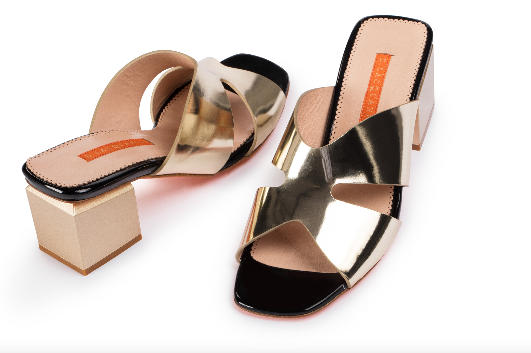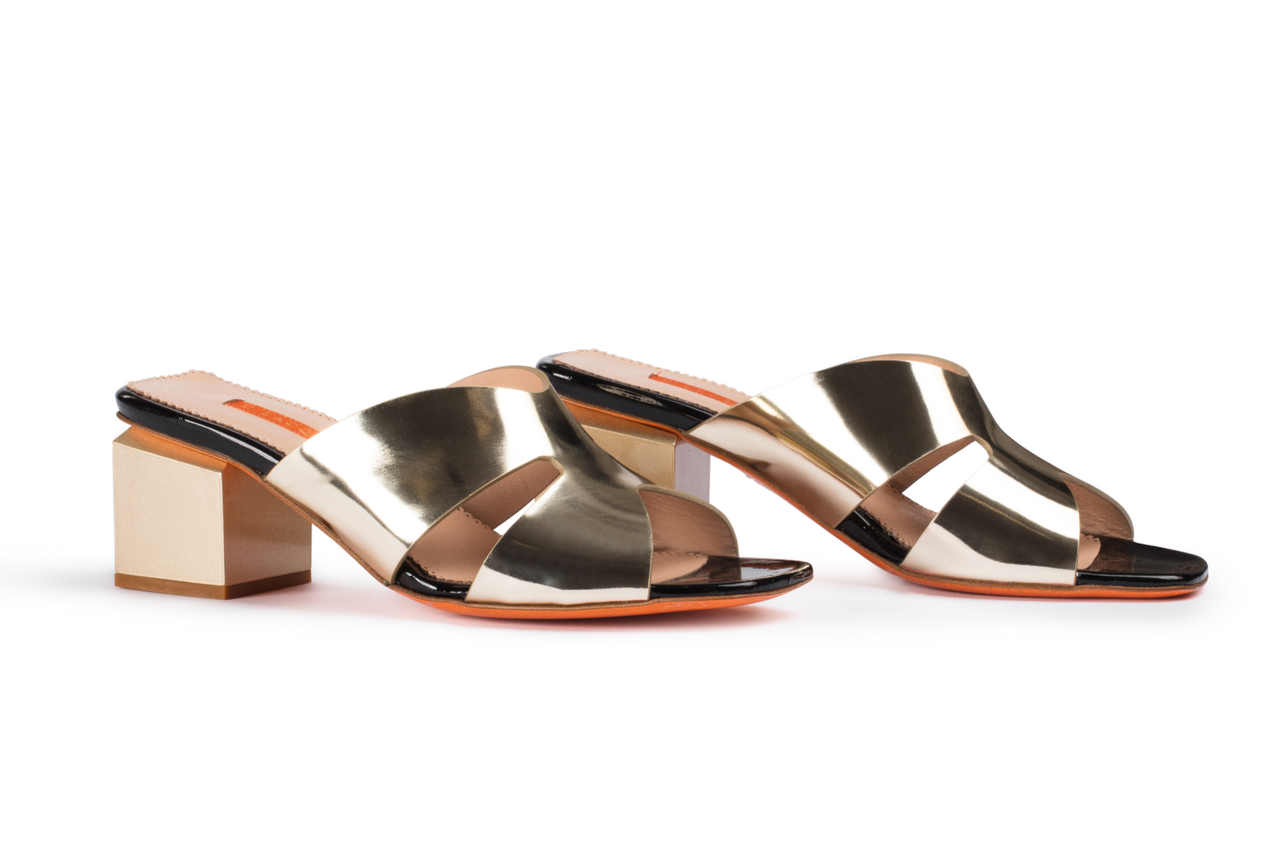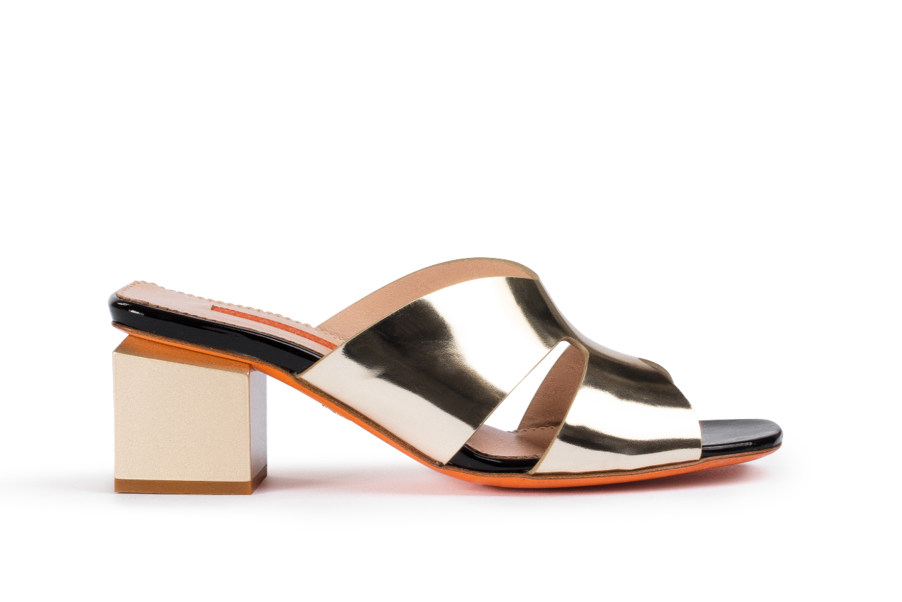 Metallic Leather Block Heel Mules